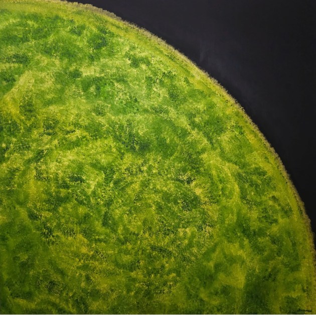 At the heart of his practice lies a deep-rooted dialogue with nature. Born and raised in Chaugain, in Bihar’s Buxar district, Singh’s sensibilities were shaped by the forests and mountains of his childhood. His art does not merely depict nature; it embodies its essence — organic, untamed, and cyclical. The tactile surfaces of his canvases echo geological formations, cosmic expanses, and spiritual terrains. In doing so, his work resonates with both indigenous Indian traditions of perceiving nature as sacred, and with global contemporary discourses around ecology, sustainability, and human belonging within the cosmos.